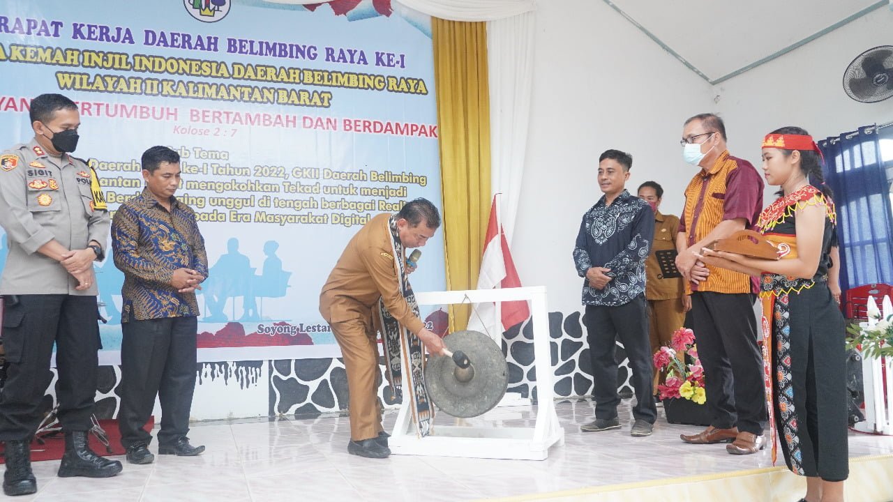 Wakil Bupati Melawi, Drs. Kluisen membuka secara resmi rapat kerja daerah (Rakerda) ke-1 Gereja Kemah Injil Indonesia (GKII) Daerah Belimbing Raya, Selasa (02/08/2022) di GKII Laodikia Soyong. Turut hadir pada kegiatan tersebut Kapolres Melawi, Kepala OPD di lingkungan Pemerintah Kabupaten Melawi, Plt. Camat Belimbing, Sekretaris GKII Wilayah II Kalimantan Barat, Ketua GKII Daerah Belimbing Raya, Badan Pengurus Jemaat GKII, Kepala Desa Batu Buil.